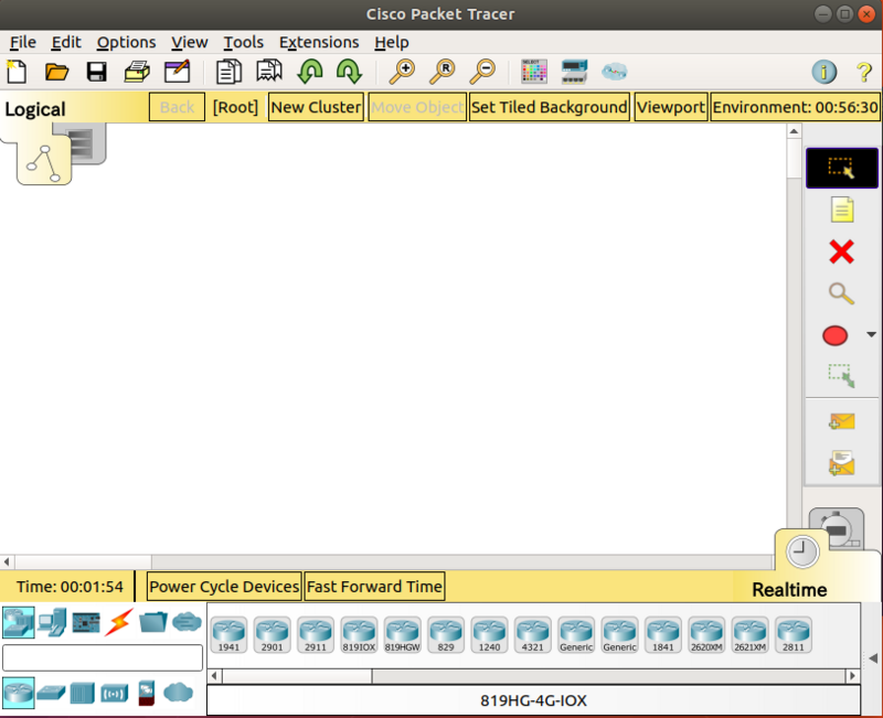 無事起動できれば,Cisco Packet Tracerの画面が表示されます