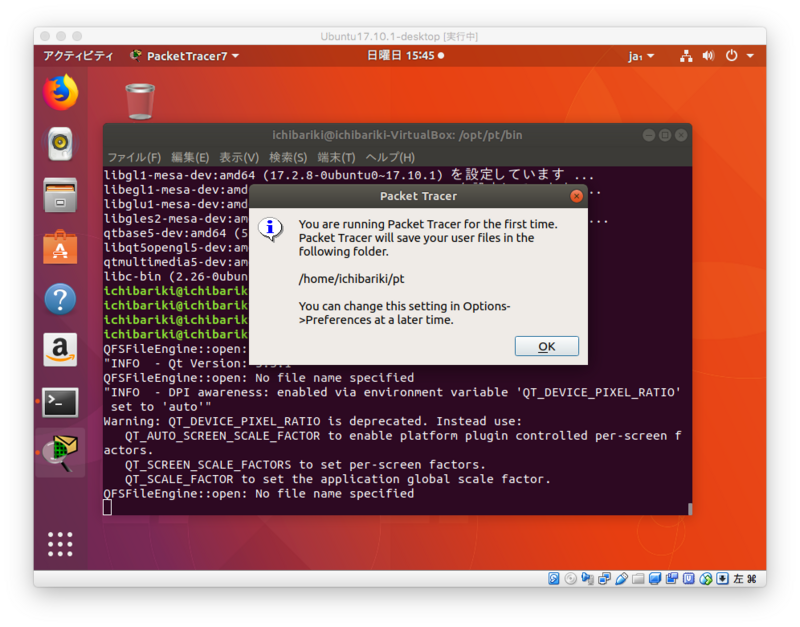 入手したLinux版Cisco Packet TracerをゲストOSのUbuntu側へ保存します